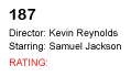 Unfortunately, three-fourths into "187," director Kevin Reynolds (he gave us the sorry-ass "Waterworld") turns the film in another direction that turns it into a lame, half-baked murder thriller. "187" makes a 360.